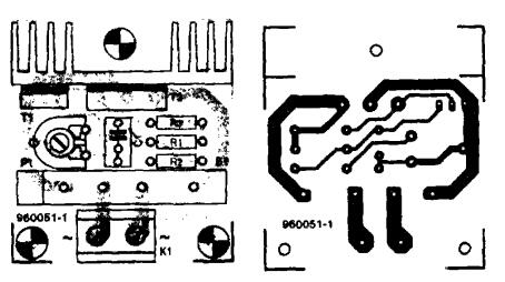 高音喇叭功率保护器的印制电路板如图所示,值得引起注意的是:两只三极管都应安置在散热片上,散热片规格为6.5kw左右。这是由于高音喇叭处于过载状态时,发热量大。通过绝缘垫圈、非金属的螺钉、螺母,三极管与散热片之间是电绝缘的,可将该板防止在滤液板上或其附近,也可以放置在面板内,紧靠高音喇叭处。用中等功率的、伸缩性好的绝缘线,将K1与高音喇叭的端点连接起来。 当限压保护器工作时,放大器高频信号被短路。若放大器不能承受,则可在高音喇叭上串接一端500mA的保险丝。